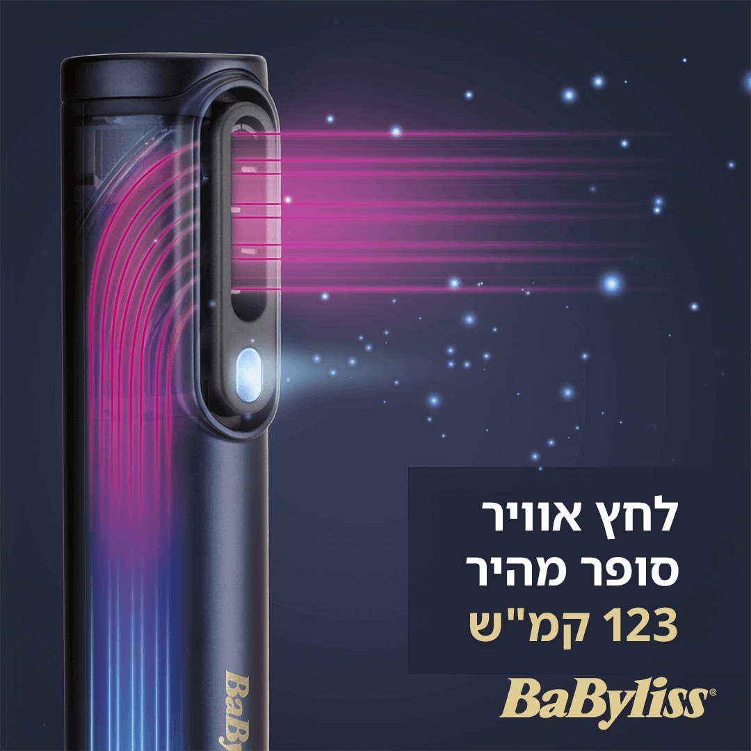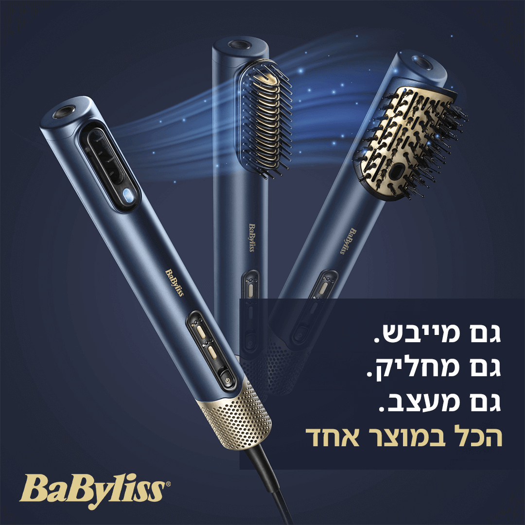 מהפכת ה-Air Wand מבית בייביליס BaByliss! מכשיר 3 ב-1 חדשני המשלב מייבש שיער עוצמתי, מחליק מקצועי ומברשת אוויר חם – הכל במוצר אחד. עם טכנולוגיה יונית מתקדמת, מצב Ultra Care ייחודי ומהירות אוויר של 123 קמ"ש, תיהני מייבוש מהיר ב-20%, עיצוב מדויק ושיער בריא ומטופח. קל לשימוש, מתאים לכל סוגי השיער ומגיע עם 3 שנות אחריות.